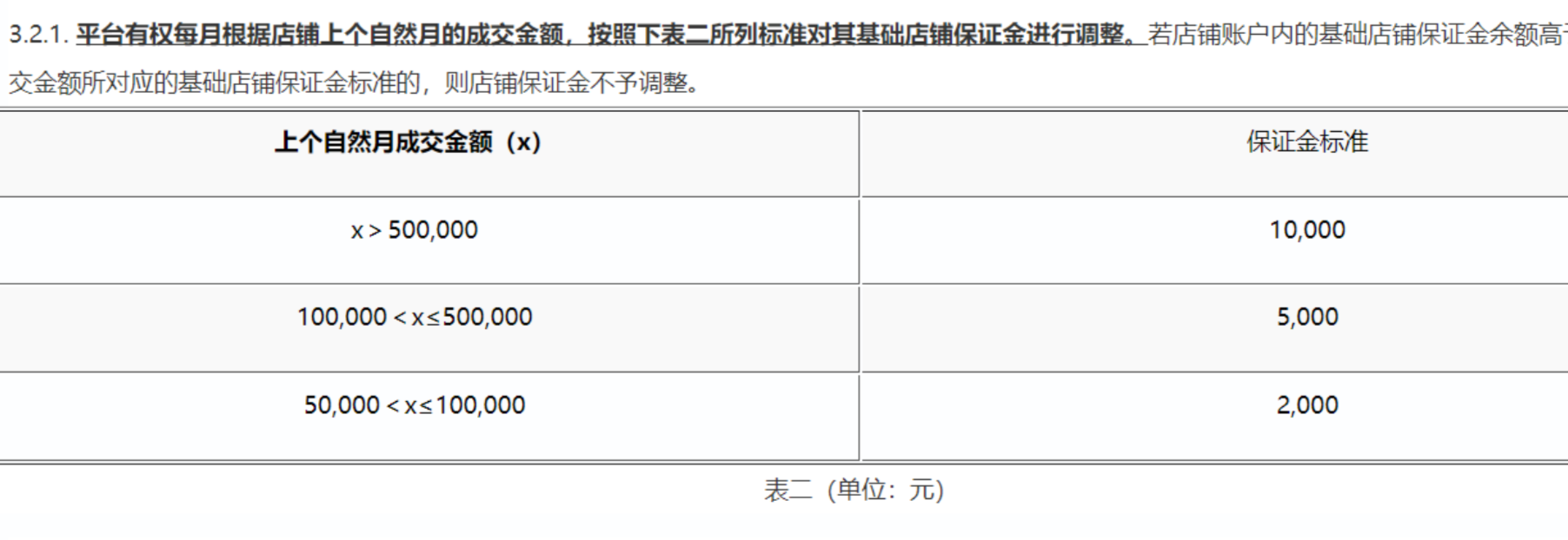 - 特殊商品类目:手机类目50000元,医药健康类目30000元