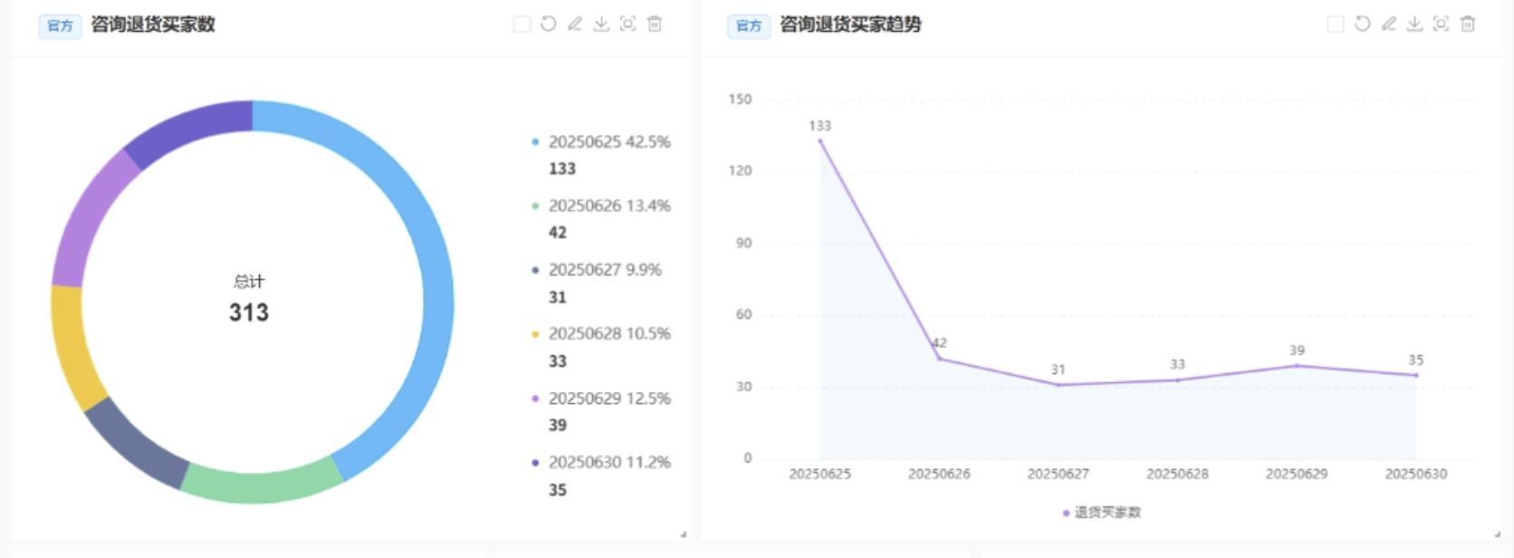 通过全量对话分析,可快速发现TOP10退货关键词,例如“尺码偏小”“掉色严重”“气味刺鼻”“物流破损”等,并按品类、时间、价格段进行结构化归类。