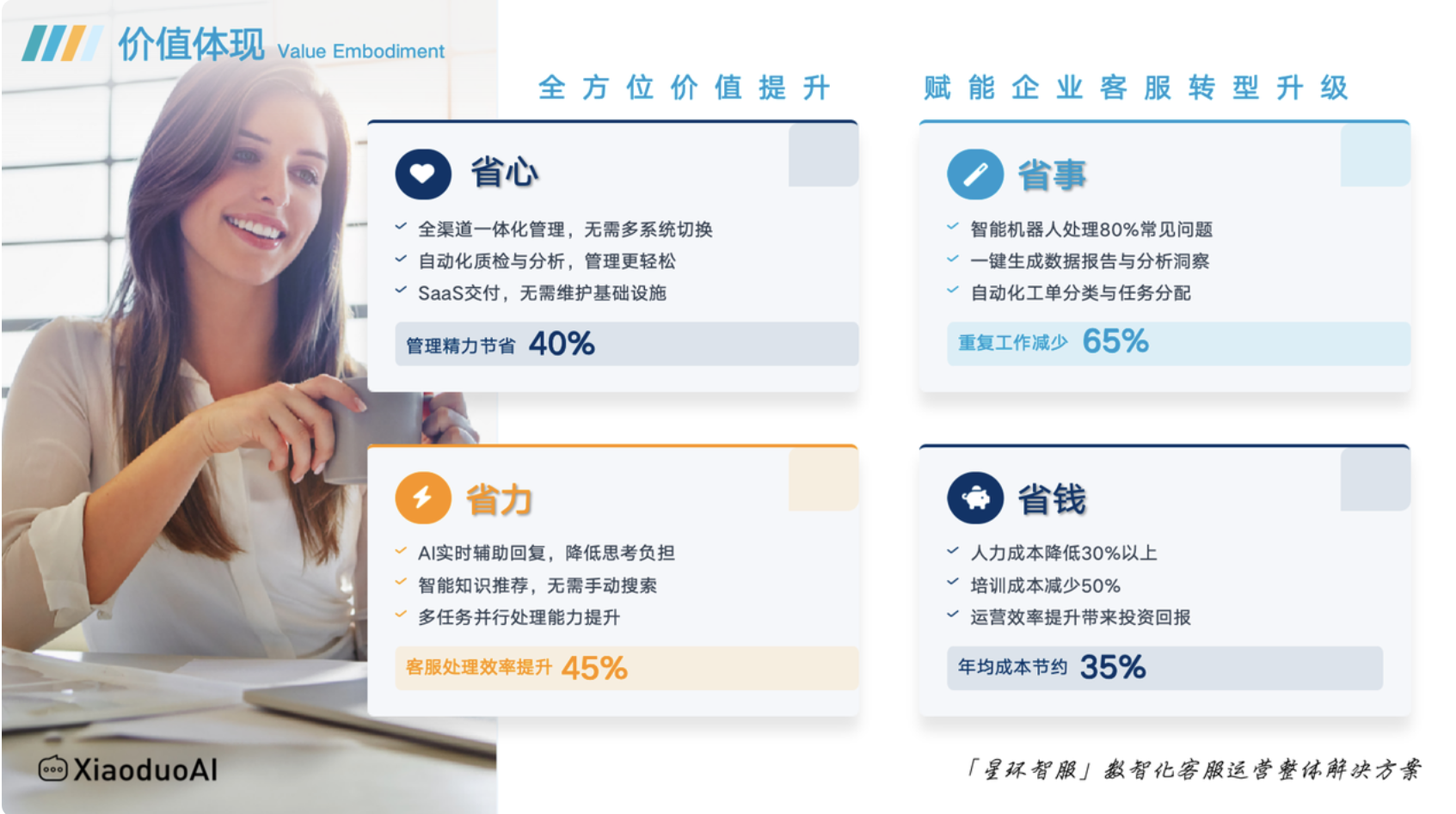 直接成本节省 3.3 万 / 月的同时,按晓多合作客户实际数据推算: